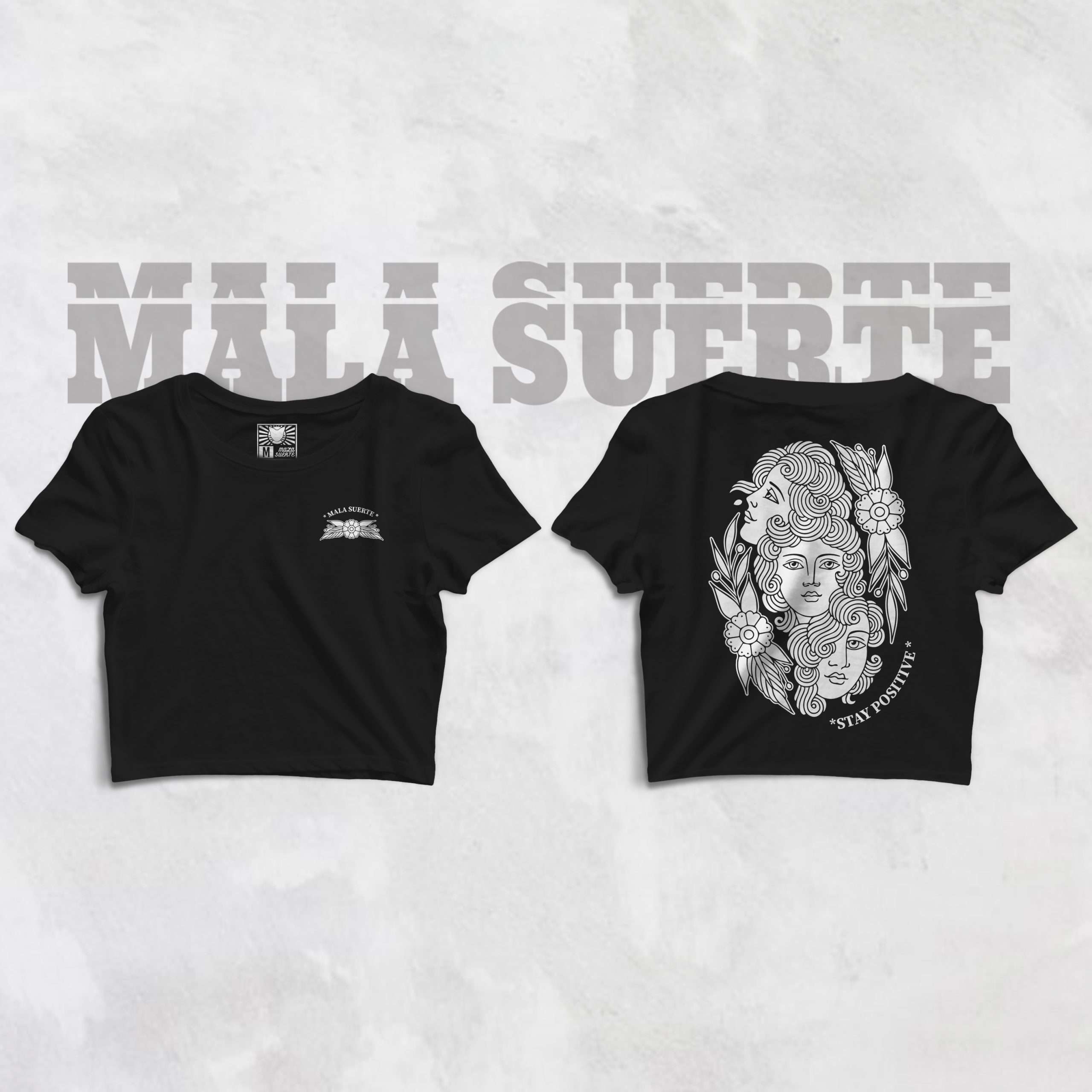 • Crop top negro o gris / estampado blanco