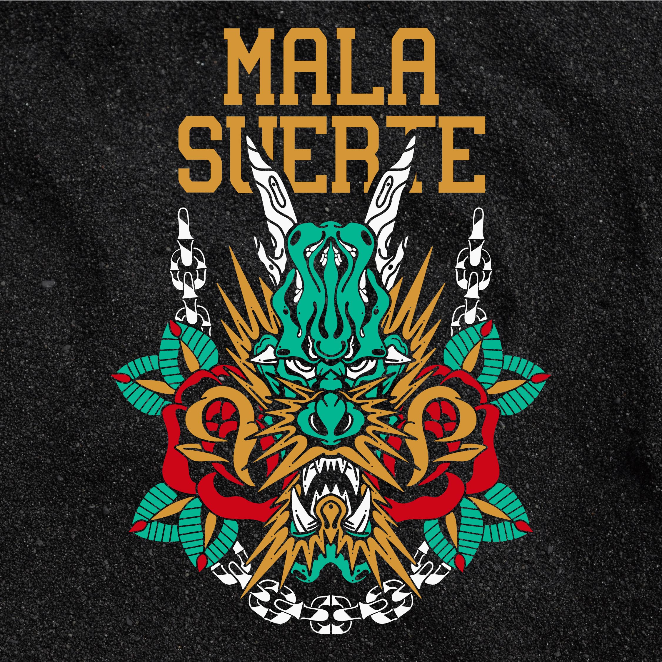 - Camisa negra / estampado blanco, rojo y menta y amarillo.
