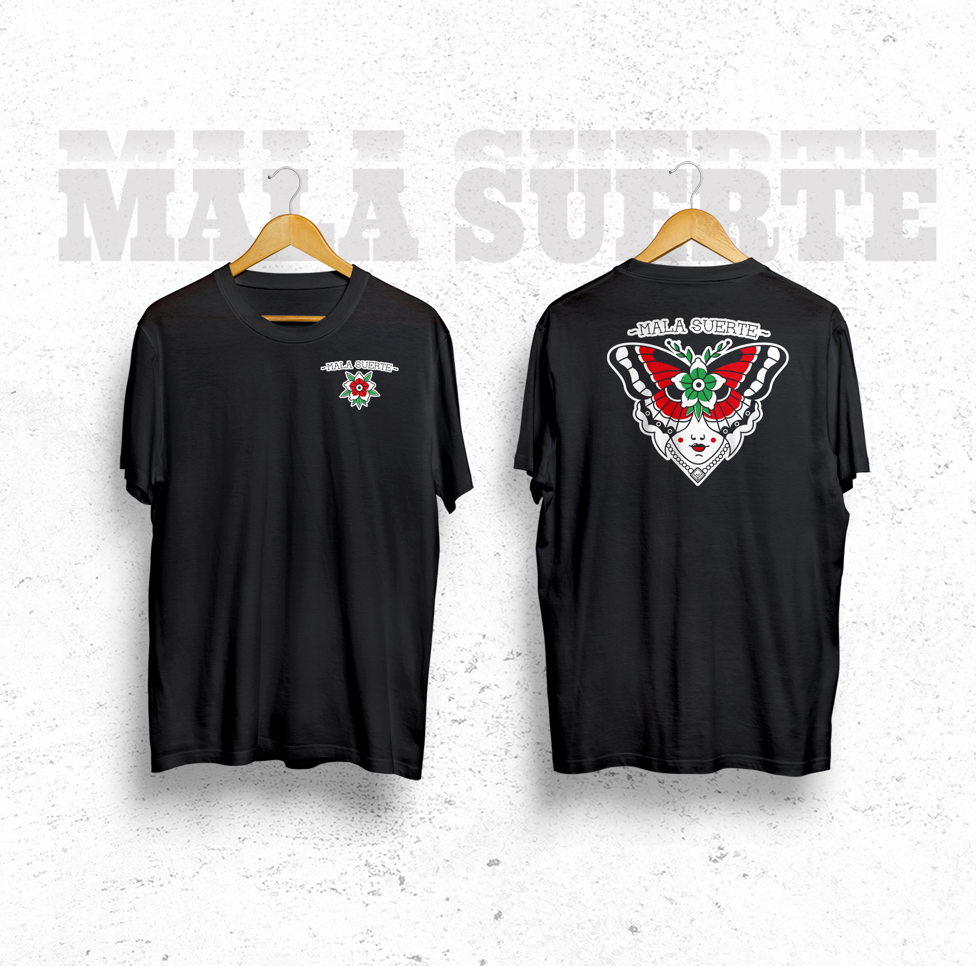 - Camisa negra o blanca / estampado negro o blanco con rojo y verde