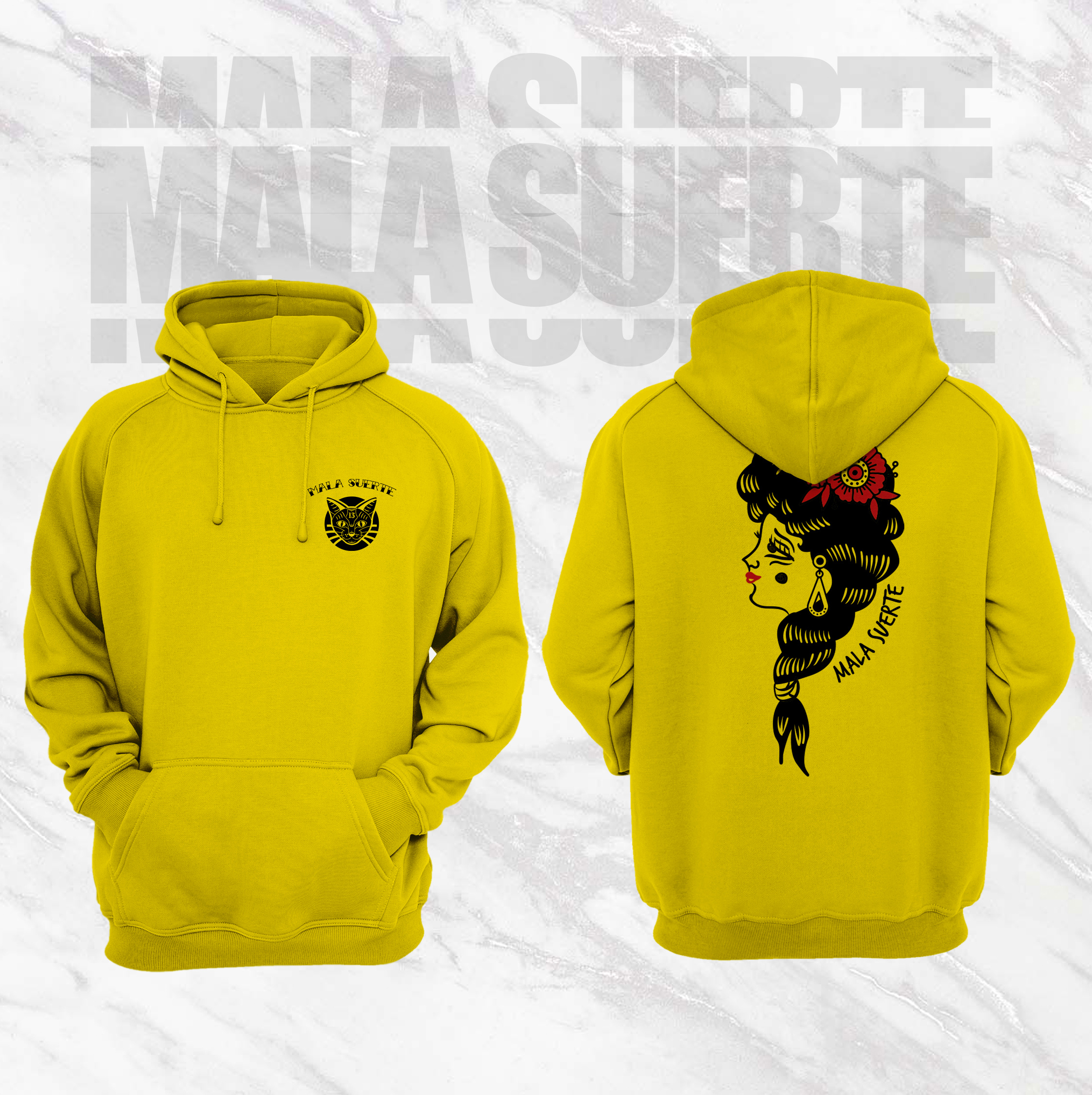 - Sueter amarillo / estampado rojo y negro